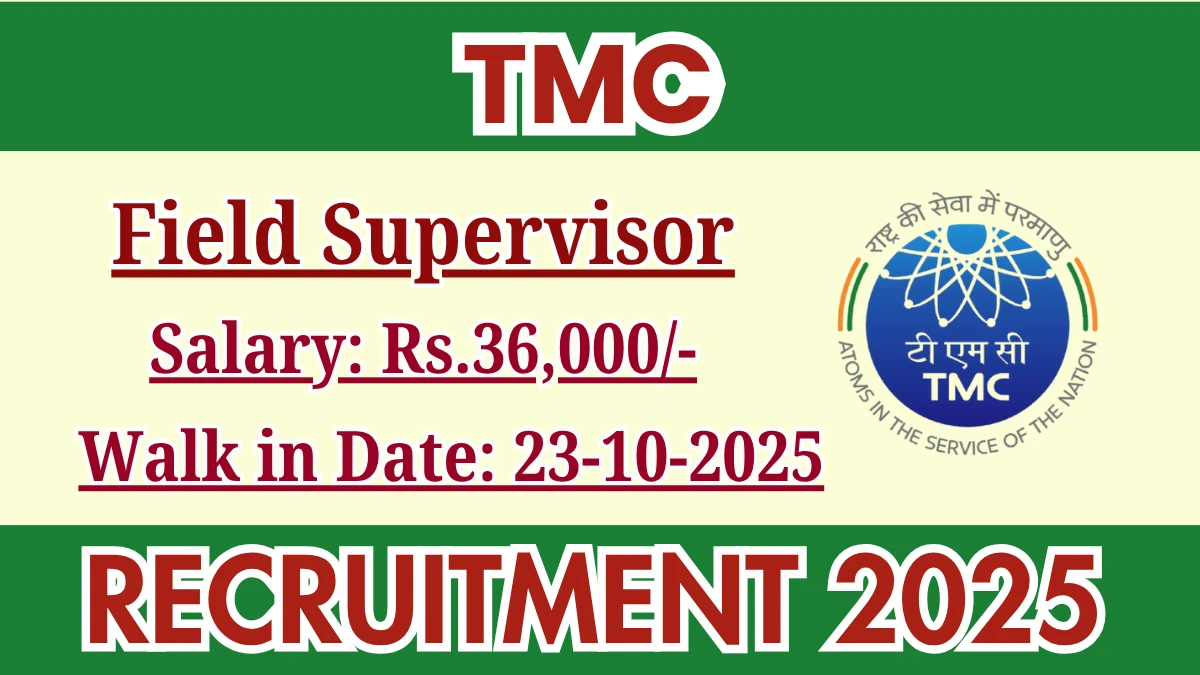 Tata Memorial Centre (TMC) Recruitment 2025 for 01 posts of Field Supervisor. Candidates with Graduation Can attend the walkin. The Walk-in on 23-10-2025. For detailed information please visit TMC official website, tmc.gov.in.