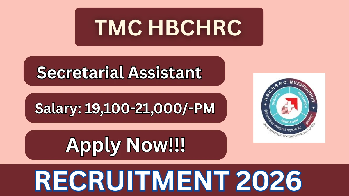 Tata Memorial Centre Homi Bhabha Cancer Hospital and Research Centre (TMC HBCHRC) Secretarial Assistant Notification 2026 has been released on 07 April 2026 on the official website. A total of 2 vacancies have been announced through the TMC HBCHRC Secretarial Assistant Recruitment 2026.