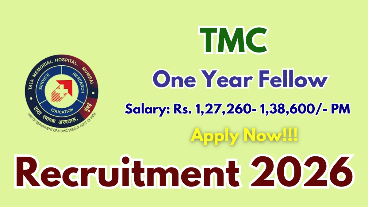 Tata Memorial Centre (TMC) Recruitment 2026 for 2 posts of One Year Fellow. Candidates with MD can attend Walk In. The Walk-in on 09-03-2026. For detailed information please visit TMC official website.
