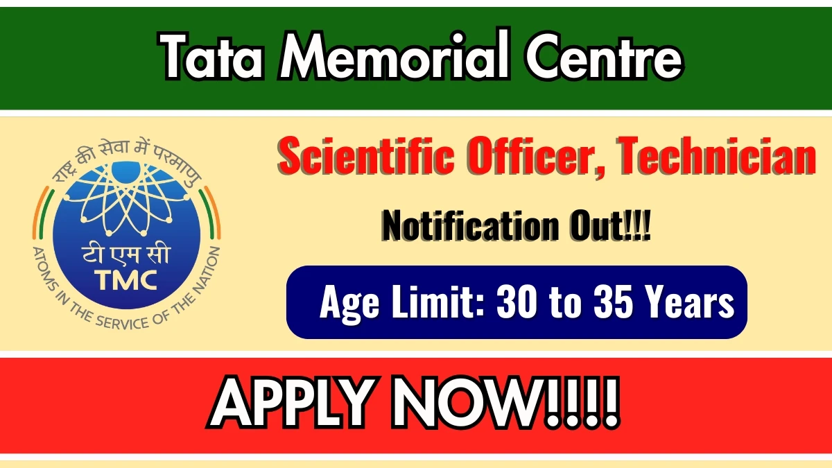 Brief Information: Tata Memorial Centre (TMC) has announced a notification for the recruitment of Scientific Officer, Technician Vacancy. Those Candidates who are interested in the vacancy details & completed all eligibility criteria can read the Notification & attend for Interview.TMC Recruitment 2025 Notification Overview