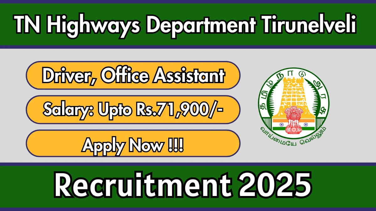TN Highways Department Tirunelveli Driver, Office Assistant Recruitment 2025 Overview