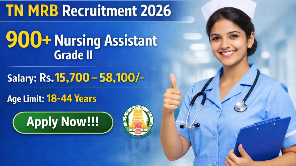 Tamil Nadu Medical Services Recruitment Board (TN MRB) has released an official notification for the recruitment of 999 Nursing Assistant Posts. Interested and eligible candidates can apply Online through the official TN MRB website. The last date to submit the application form is 08-02-2026. In this article, you’ll find the TN MRB Nursing Assistant Posts recruitment details, including eligibility criteria, age limit, salary structure, selection process, application steps, and direct links to the official notification and Online application form.
