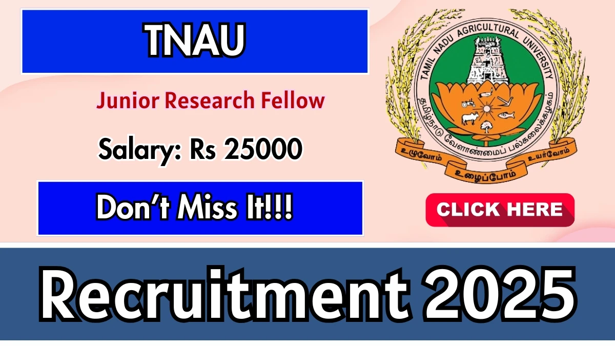 Tamil Nadu Agricultural University (TNAU) Junior Research Fellow Vacancy 2025 |