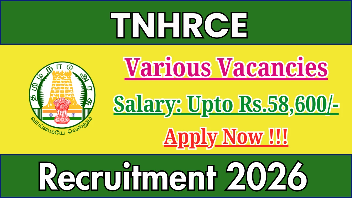 Tamil Nadu Hindu Religious Endowments Department (TNHRCE) has released an official notification for the recruitment of 10 Junior Assistant, Collection Clerk, And More Posts. Interested and eligible candidates can apply Offline through the official TNHRCE website. The last date to submit the application form is 30-01-2026. In this article, you’ll find the TNHRCE Junior Assistant, Collection Clerk, And More Posts recruitment details, including eligibility criteria, age limit, salary structure, selection process, application steps, and direct links to the official notification and Offline application form.
