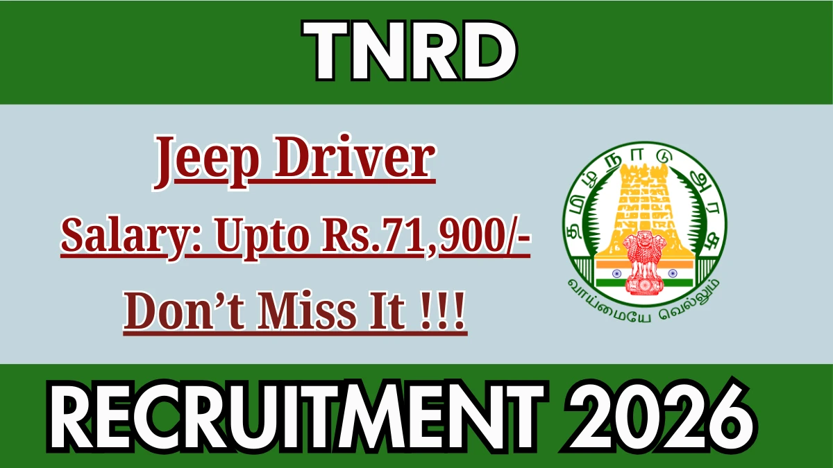 Rural Development and Panchayat Raj Department (TNRD) has released an official notification for the recruitment of 01 Jeep Driver Posts. Interested and eligible candidates can apply Offline through the official TNRD website. The last date to submit the application form is 10-02-2026. In this article, you’ll find the TNRD Jeep Driver Posts recruitment details, including eligibility criteria, age limit, salary structure, selection process, application steps, and direct links to the official notification and Offline application form.