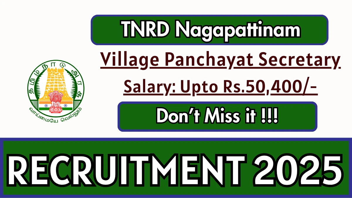 TN Rural Development and Panchayat Raj Department (TNRD Nagapattinam) has released an official notification for the recruitment of 18 Village Panchayat Secretary Posts. Interested and eligible candidates can apply Offline through the official TNRD Nagapattinam website. The last date to submit the application form is 09-11-2025. In this article, you’ll find the TNRD Nagapattinam Village Panchayat Secretary Posts recruitment details, including eligibility criteria, age limit, salary structure, selection process, application steps, and direct links to the official notification and Offline application form.