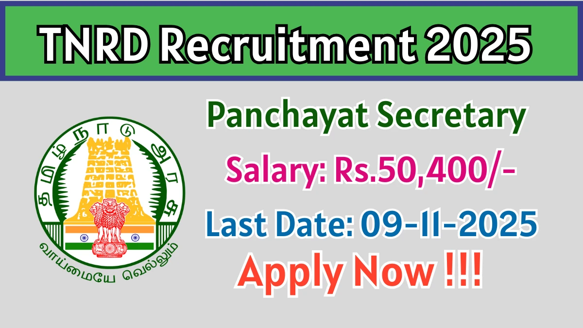 Rural Development and Panchayat Raj Department TN (TNRD) has released an official notification for the recruitment of 54 Panchayat Secretary Posts. Interested and eligible candidates can apply Offline through the official TNRD website. The last date to submit the application form is 09-11-2025. In this article, you’ll find the TNRD Panchayat Secretary Posts recruitment details, including eligibility criteria, age limit, salary structure, selection process, application steps, and direct links to the official notification and Offline application form.