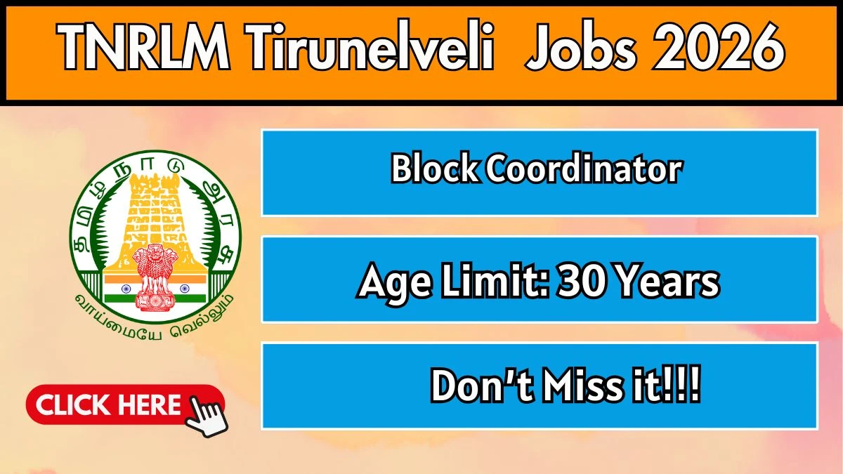 Tamil Nadu State Rural Livelihood Mission (TNRLM Tirunelveli) has released an official notification for the recruitment of 22 Block Coordinator Posts. Interested and eligible candidates can apply Offline through the official TNRLM Tirunelveli website. The last date to submit the application form is 16-02-2026. In this article, you’ll find the TNRLM Tirunelveli Block Coordinator Posts recruitment details, including eligibility criteria, age limit, salary structure, selection process, application steps, and direct links to the official notification and Offline application form.