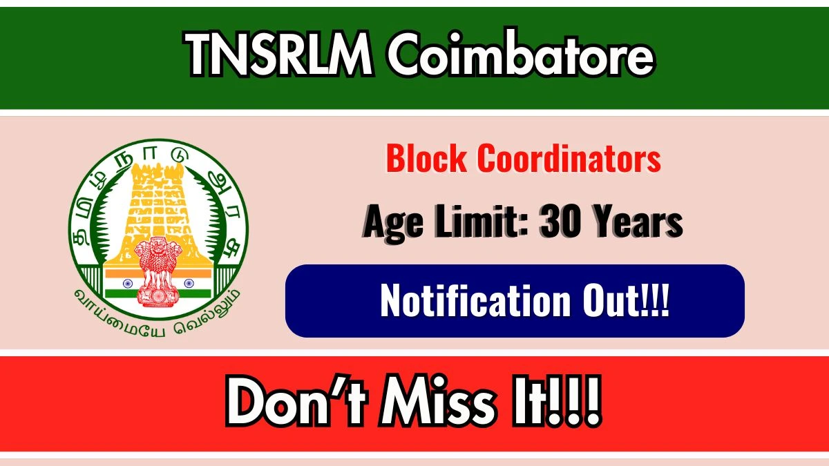 TNSRLM is recruiting Block Coordinators across 12 blocks in Coimbatore district under Tamil Nadu State Rural Livelihood Mission. A total of 28 positions are open for this recruitment drive.