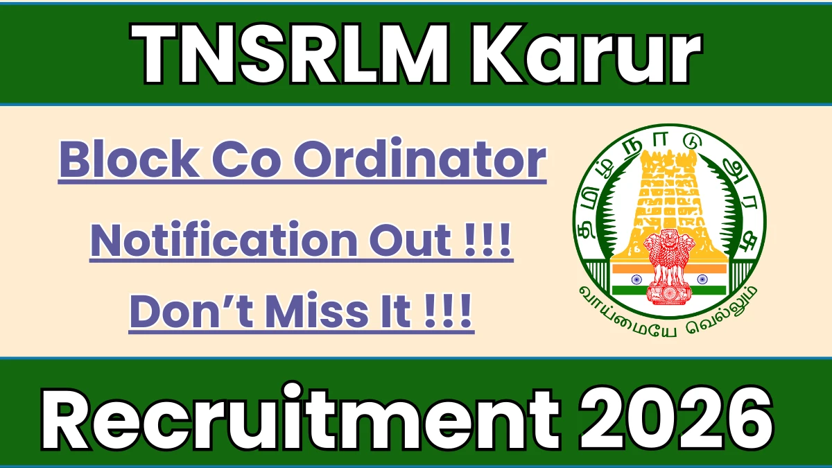 Tamil Nadu State Rural Livelihood Mission (TNSRLM Karur) has released an official notification for the recruitment of 08 Block Co Ordinator Posts. Interested and eligible candidates can apply Offline through the official TNSRLM Karur website. The last date to submit the application form is 16-02-2026. In this article, you’ll find the TNSRLM Karur Block Co Ordinator Posts recruitment details, including eligibility criteria, age limit, salary structure, selection process, application steps, and direct links to the official notification and Offline application form.