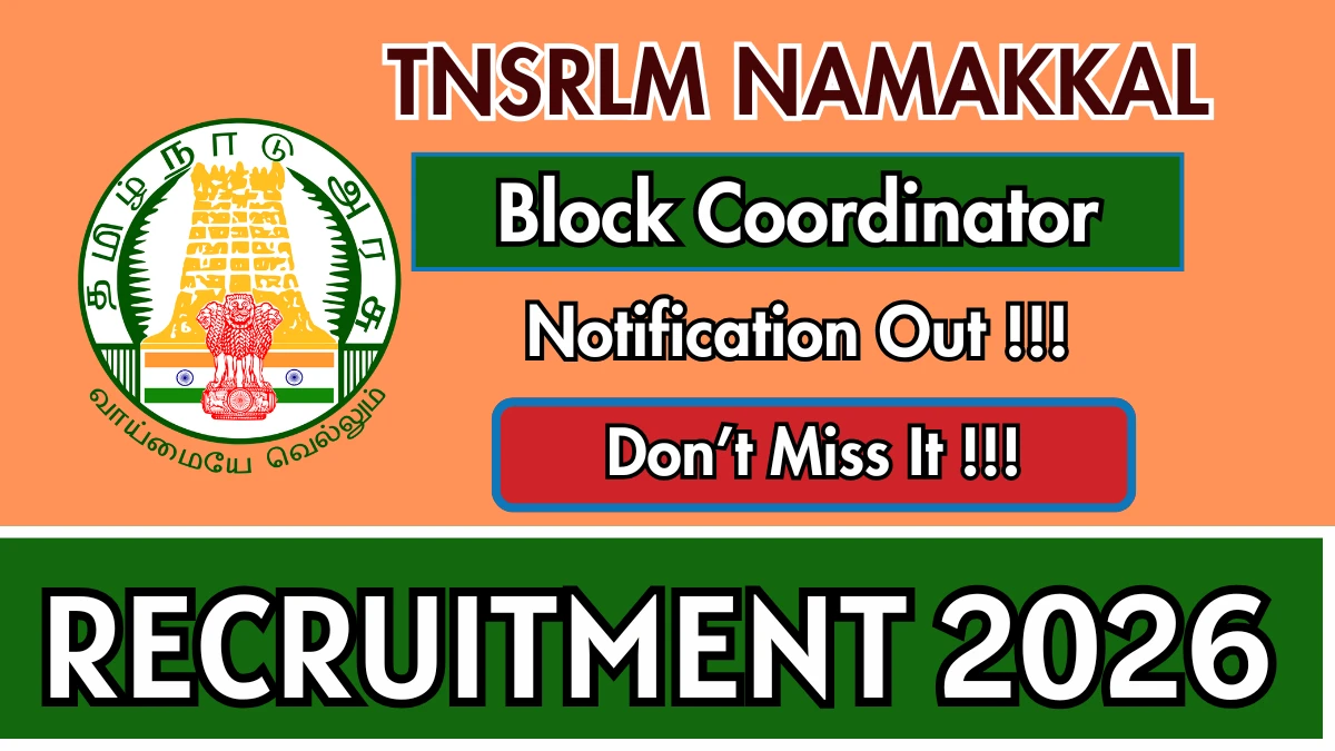 Tamil Nadu State Rural Livelihoods Mission (TNSRLM Namakkal) has released an official notification for the recruitment of 18 Block Coordinator Posts. Interested and eligible candidates can apply Offline through the official TNSRLM Namakkal website. The last date to submit the application form is 16-02-2026. In this article, you’ll find the TNSRLM Namakkal Block Coordinator Posts recruitment details, including eligibility criteria, age limit, salary structure, selection process, application steps, and direct links to the official notification and Offline application form.