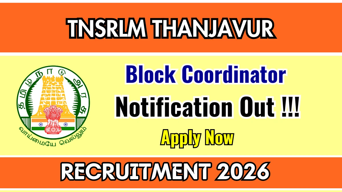 Tamil Nadu State Rural Livelihoods Mission Thanjavur (TNSRLM Thanjavur) has released an official notification for the recruitment of 09 Block Coordinator Posts. Interested and eligible candidates can apply Offline through the official TNSRLM Thanjavur website. The last date to submit the application form is 16-02-2026. In this article, you’ll find the TNSRLM Thanjavur Block Coordinator Posts recruitment details, including eligibility criteria, age limit, salary structure, selection process, application steps, and direct links to the official notification and Offline application form.