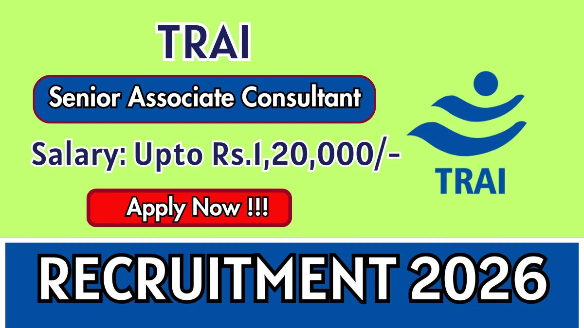 The Telecom Regulatory Authority of India (TRAI) Recruitment 2026 for posts of 02 Senior Associate Consultant. Candidates with Any Bachelors Degree Can Apply Online. The online application opens on 09-01-2026, and closes on 30-01-2026. The candidate shall apply online through TRAI website, trai.gov.in.