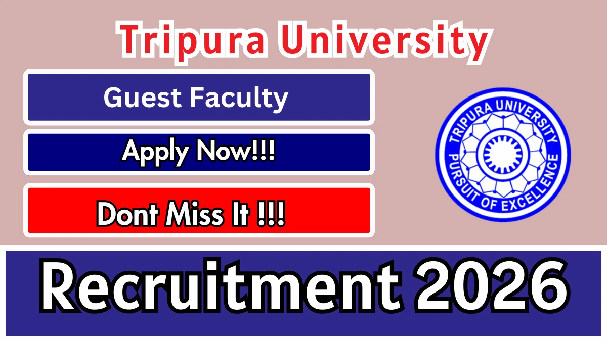 Tripura University Recruitment 2026 for 03 posts of Guest Faculty. Candidates Can attend the walkin. The Walk-in on 06-02-2026. For detailed information please visit Tripura University official website, tripurauniv.ac.in.