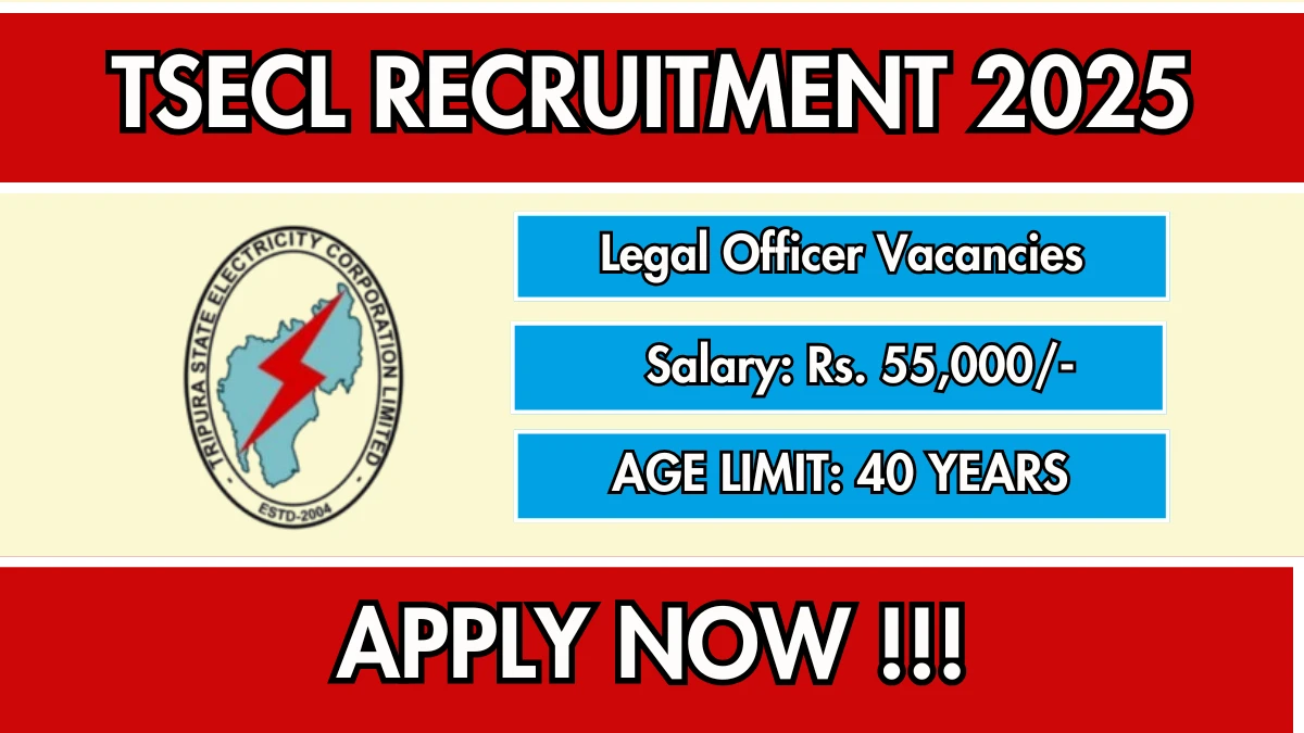 Tripura State Electricity Corporation (TSECL) has released an official notification for the recruitment of 01 Legal Officer Posts. Interested and eligible candidates can apply Offline through the official TSECL website. The last date to submit the application form is 18-11-2025. In this article, you’ll find the TSECL Legal Officer Posts recruitment details, including eligibility criteria, age limit, salary structure, selection process, application steps, and direct links to the official notification and Offline application form.