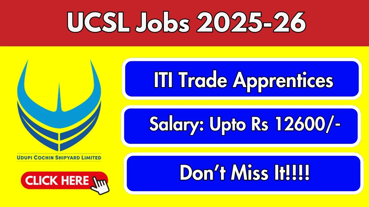 The Udupi Cochin Shipyard (UCSL) Recruitment 2025 for 19 posts of ITI Trade Apprentices. Candidates with ITI Can Apply Online. The online application opens on 22-12-2025, and closes on 21-01-2026. The candidate shall apply online through UCSL website, udupicsl.com.