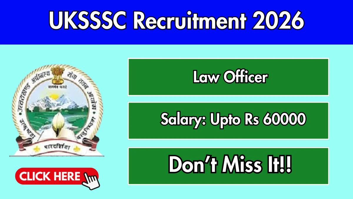 Uttarakhand Subordinate Service Selection Commission (UKSSSC) has released an official notification for the recruitment of 01 Law Officer Posts. Interested and eligible candidates can apply Online through the official UKSSSC website. The last date to submit the application form is 04-02-2026. In this article, you’ll find the UKSSSC Law Officer Posts recruitment details, including eligibility criteria, age limit, salary structure, selection process, application steps, and direct links to the official notification and Online application form.