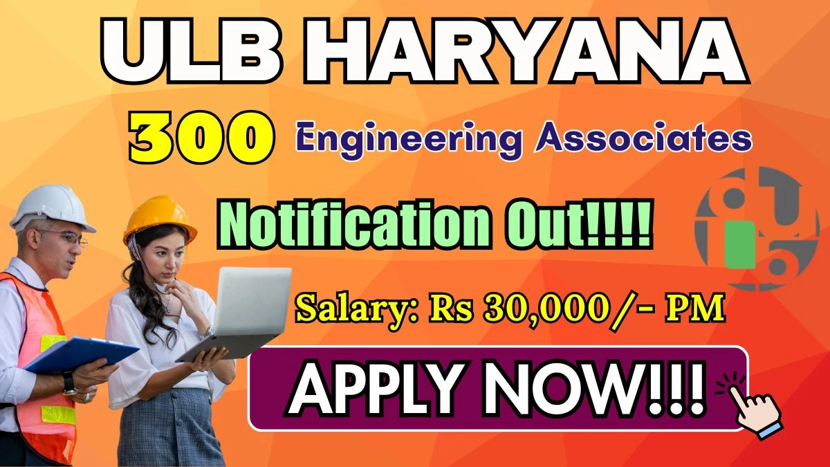 Urban Local Bodies Department Haryana (ULB Haryana) has released an official notification for the recruitment of 300 Engineering Associates Posts. Interested and eligible candidates can apply Online through the official ULB Haryana website. The last date to submit the application form is 31-10-2025. In this article, you’ll find the ULB Haryana Engineering Associates Posts recruitment details, including eligibility criteria, age limit, salary structure, selection process, application steps, and direct links to the official notification and Online application form.