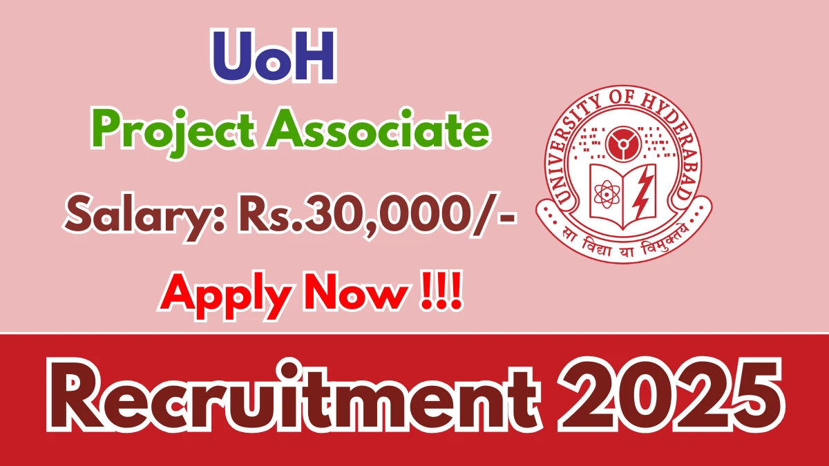 University of Hyderaba (UoH) has released an official notification for the recruitment of 01 Project Associate Posts. Interested and eligible candidates can apply Online through the official UoH website. The last date to submit the application form is 28-11-2025. In this article, you’ll find the UoH Project Associate Posts recruitment details, including eligibility criteria, age limit, salary structure, selection process, application steps, and direct links to the official notification and Online application form.