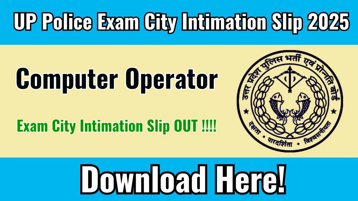 Download UP Police Computer Operator Grade A Exam City Intimation Slip 2025 now! Get direct link, step-by-step process, and important exam details. Visit uppbpb.gov.in to download.