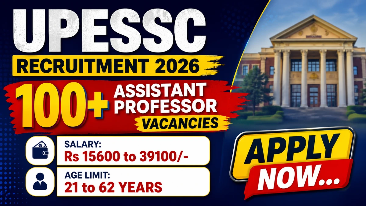 Uttar Pradesh Shiksha Seva Chayan Aayog (UPSSSC) has released the official Assistant Professor (B.Ed.) Notification 2026 on 28 April 2026 at www.upessc.up.gov.in. A total of 107 vacancies have been announced under the UPSSSC Assistant Professor B.Ed. Recruitment 2026. Eligible candidates aged between 21 to 62 years with a qualification of Postgraduate degree in relevant fields and B.Ed. degree can apply online from 28 April 2026 to 27 May 2026. The official notification PDF and online application link are available below.