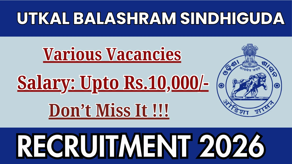 Utkal Balashram Sindhiguda has released an official notification for the recruitment of 03 Art and Craft cum Music Teacher, House Keeper and More Posts. Interested and eligible candidates can apply Online through the official Utkal Balashram Sindhiguda website. The last date to submit the application form is 20-02-2026. In this article, you’ll find the Utkal Balashram Sindhiguda Art and Craft cum Music Teacher, House Keeper and More Posts recruitment details, including eligibility criteria, age limit, salary structure, selection process, application steps, and direct links to the official notification and Online application form.