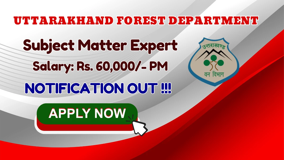 Uttarakhand Forest Department Subject Matter Expert Vacancy 2026