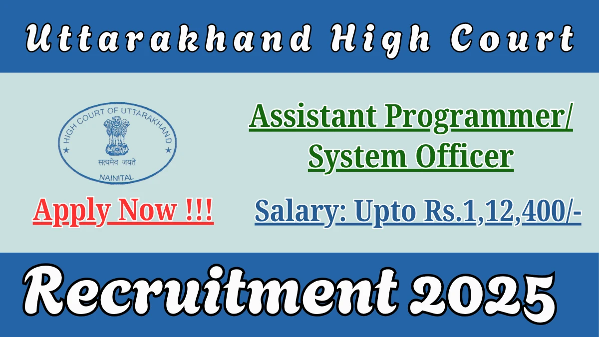 Uttarakhand High Court Assistant Programmer/ System Officer Recruitment 2025 Vacancy Details