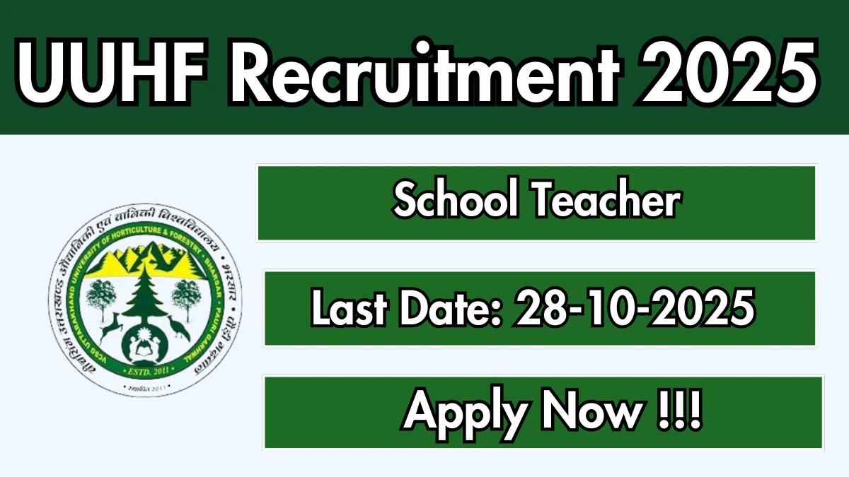 Uttarakhand University of Horticulture and Forestry (UUHF) has released an official notification for the recruitment of School Teacher Posts. Interested and eligible candidates can apply Offline through the official UUHF website. The last date to submit the application form is 28-10-2025. In this article, you’ll find the UUHF School Teacher Posts recruitment details, including eligibility criteria, age limit, salary structure, selection process, application steps, and direct links to the official notification and Offline application form.