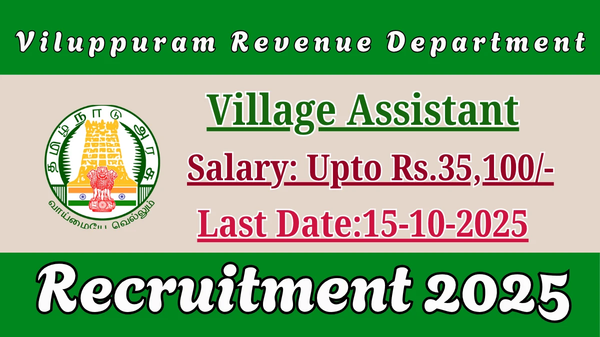 Viluppuram Revenue Department (Viluppuram Revenue Department) has released an official notification for the recruitment of 11 Village Assistant Posts. Interested and eligible candidates can apply Offline through the official Viluppuram Revenue Department website. The last date to submit the application form is 15-10-2025. In this article, you’ll find the Viluppuram Revenue Department Village Assistant Posts recruitment details, including eligibility criteria, age limit, salary structure, selection process, application steps, and direct links to the official notification and Offline application form.