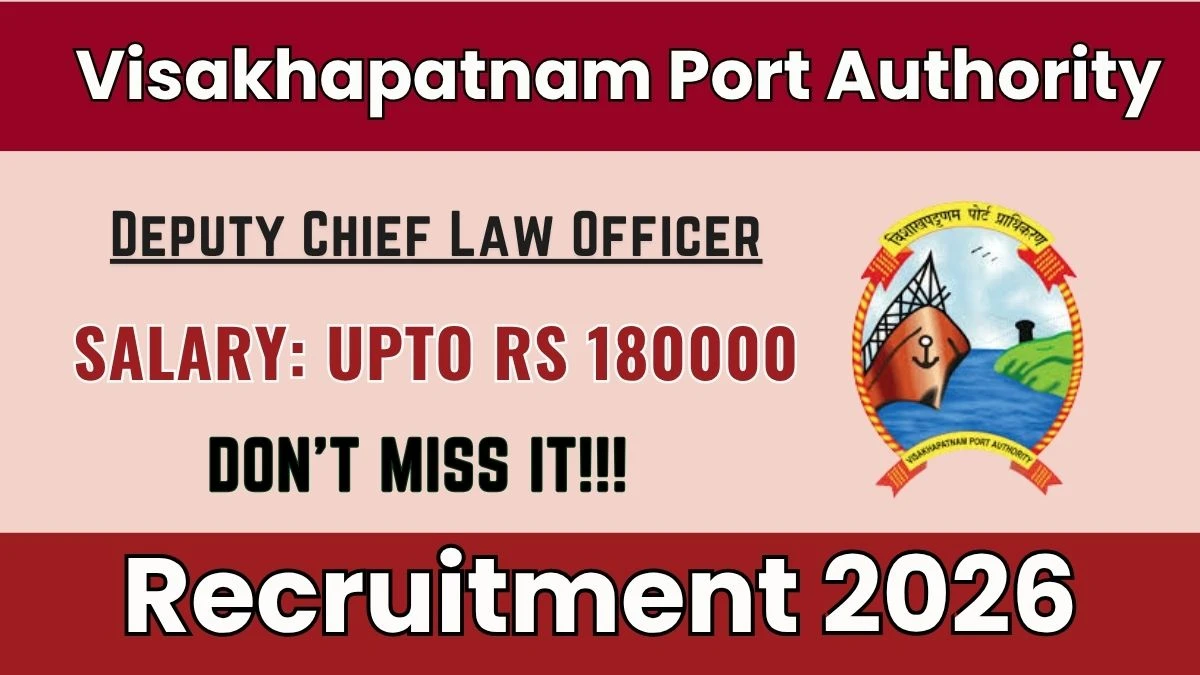 Visakhapatnam Port Authority (VPA) Deputy Chief Law Officer Notification 2026 has been released on the official website vizagport.com. A total of 1 vacancy has been announced through the Visakhapatnam Port Authority Deputy Chief Law Officer Recruitment 2026.