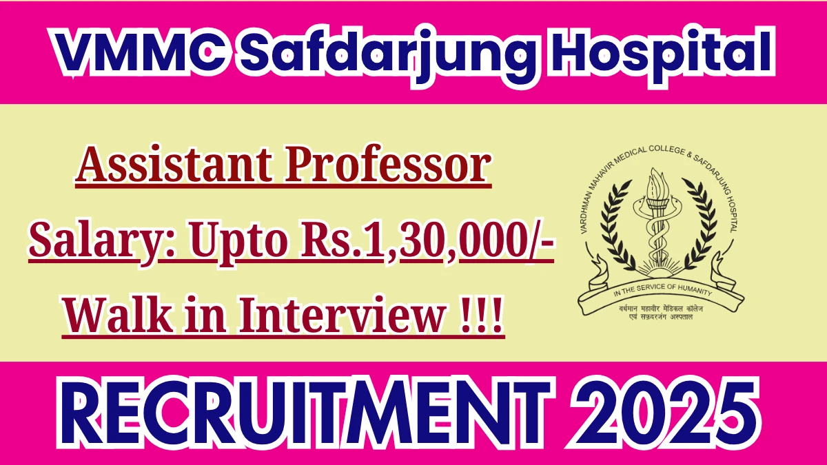 VMMC Safdarjung Hospital Assistant Professor Recruitment 2025 Vacancy Details |