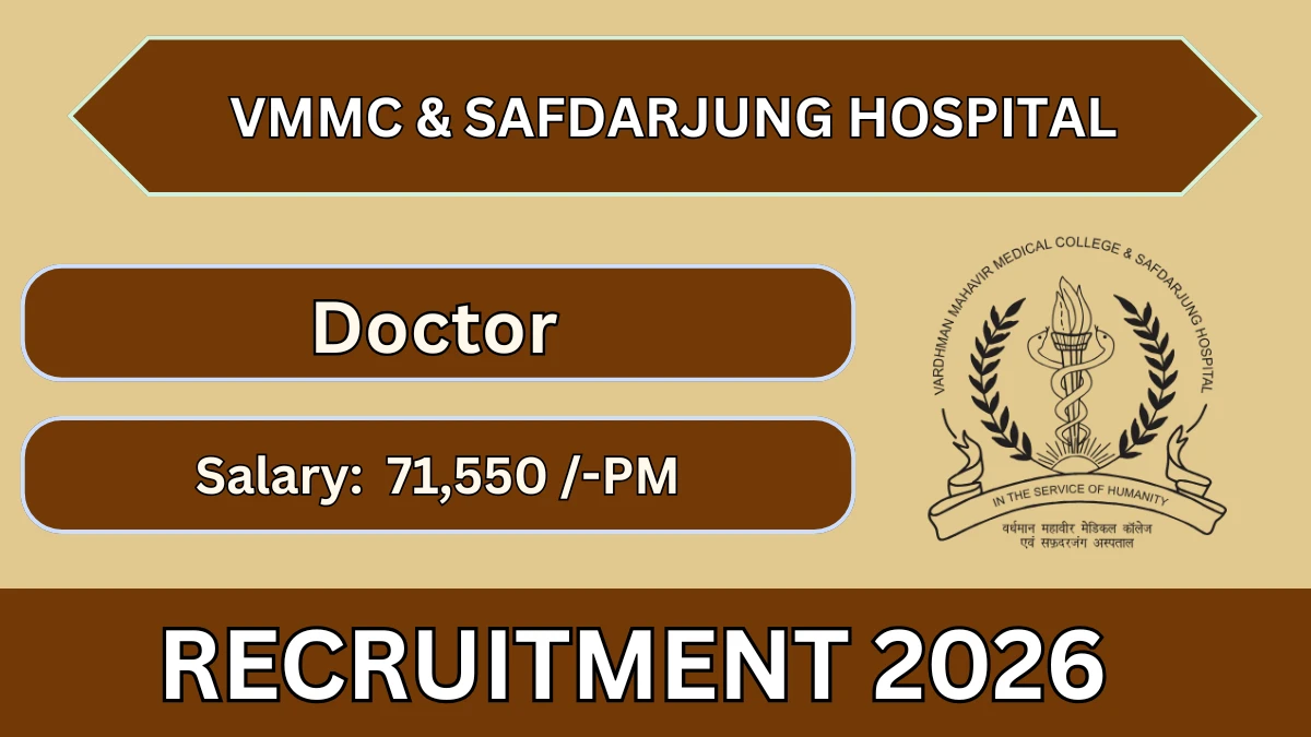 Vidyasagar Medical College & Safdarjung Hospital (VMMC & Safdarjung Hospital) Medical Officer Notification 2026 has been released on the official website of VMMC & Safdarjung Hospital. A total of 1 vacancy has been announced through the VMMC & Safdarjung Hospital Medical Officer Recruitment 2026.