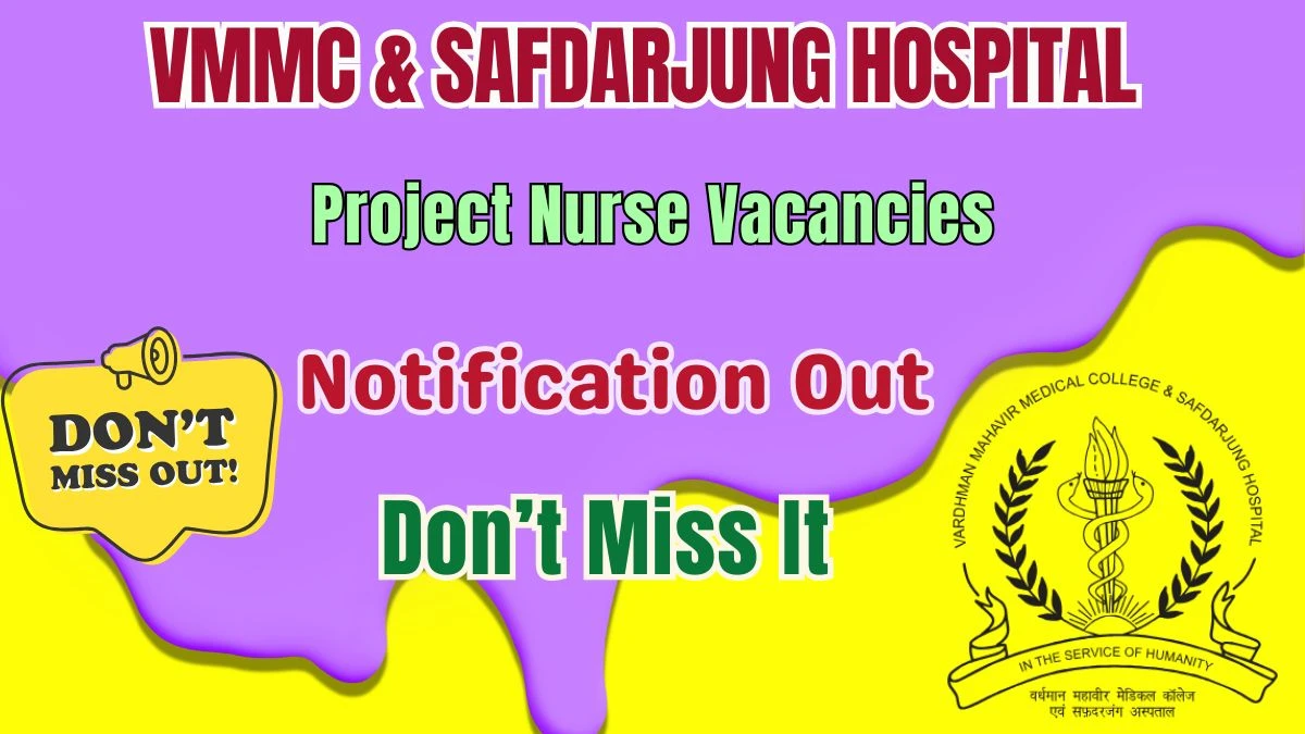 Vardhman Mahavir Medical College & Safdarjung Hospital (VMMC & Safdarjung Hospital) has released an official notification for Walk-in Interview for Project Nurse Posts. Eligible candidates can attend the Walk-in Interview on at the VMMC & Safdarjung Hospital office with original documents and self-attested copies.