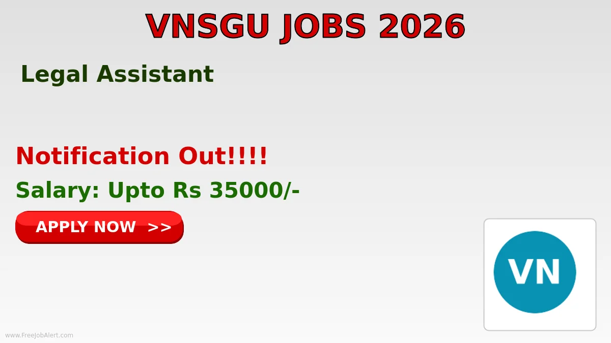 Veer Narmad South Gujarat University (VNSGU) Recruitment 2026: Veer Narmad South Gujarat University has released the official notification for 1 Legal Assistant posts, inviting applications from eligible candidates in Gujarat. This recruitment provides an excellent opportunity for candidates seeking stable and well-paid government jobs.