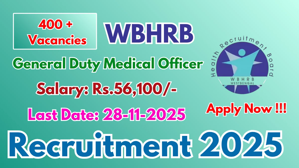 West Bengal Health Recruitment Board (WBHRB) has released an official notification for the recruitment of 403 General Duty Medical Officer Posts. Interested and eligible candidates can apply Online through the official WBHRB website. The last date to submit the application form is 28-11-2025. In this article, you’ll find the WBHRB General Duty Medical Officer Posts recruitment details, including eligibility criteria, age limit, salary structure, selection process, application steps, and direct links to the official notification and Online application form.