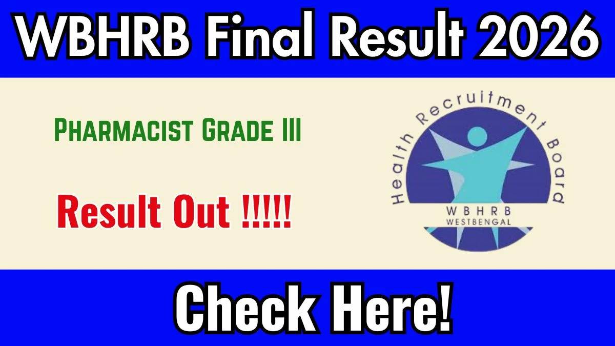 This article provides complete information about WBHRB Pharmacist Grade III Final Result 2026 including direct download links, panel list, expected cutoff marks, details in the result, and step-by-step instructions to check results.
