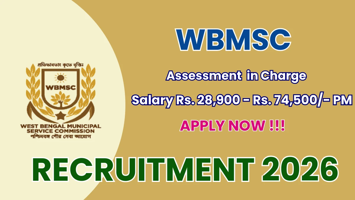 West Bengal Municipal Service Commission (WBMSC) has officially released a notification for the recruitment of 1 Assessment-in-Charge Posts. This recruitment drive offers a great opportunity for candidates looking for government jobs. Interested and eligible candidates can apply online through the official website.The online application process starts from 16-03-2026 and will remain open until 17-04-2026, so applicants are advised to submit their forms well before the deadline to avoid last-minute issues.