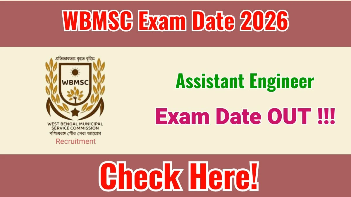 WBMSC Exam Date 2026: The West Bengal Municipal Service Commission has officially released the exam date for the Assistant Engineer recruitment. Candidates who have applied for the Assistant Engineer posts can check the complete exam schedule below. The examination is scheduled to be held on 18 January 2026. All eligible candidates are advised to download their admit cards and prepare accordingly.