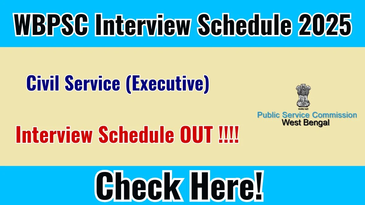 West Bengal Public Service Commission has successfully conducted the examination for the post of Civil Service (Executive). West Bengal Public Service Commission has announced the Civil Service (Executive) Interview Schedule 2025 after the result has been declared. Candidates who have been selected from the merit list and have got shortlisted can check and download the WBPSC Civil Service (Executive) Interview Schedule 2025 . Candidates can download the WBPSC Civil Service (Executive) Interview Schedule 2025 from the official website of the West Bengal Public Service Commission.