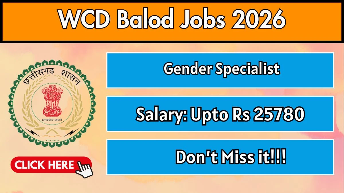 Women and Child Development Balod (WCD Balod) has released an official notification for the recruitment of 01 Gender Specialist Posts. Interested and eligible candidates can apply Offline through the official WCD Balod website. The last date to submit the application form is 06-02-2026. In this article, you’ll find the WCD Balod Gender Specialist Posts recruitment details, including eligibility criteria, age limit, salary structure, selection process, application steps, and direct links to the official notification and Offline application form.