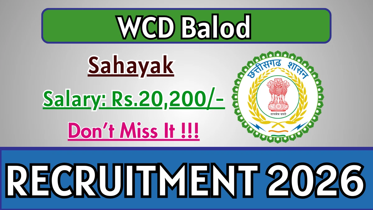 Women and Child Development Department Balod (WCD Balod) Recruitment 2026: Women and Child Development Department Balod has released the official notification for 1 Sahayak Grade-03 (Assistant Grade-III / Third Division Clerk) posts, inviting applications from eligible candidates. This recruitment provides an excellent opportunity for candidates seeking stable and well-paid government jobs.