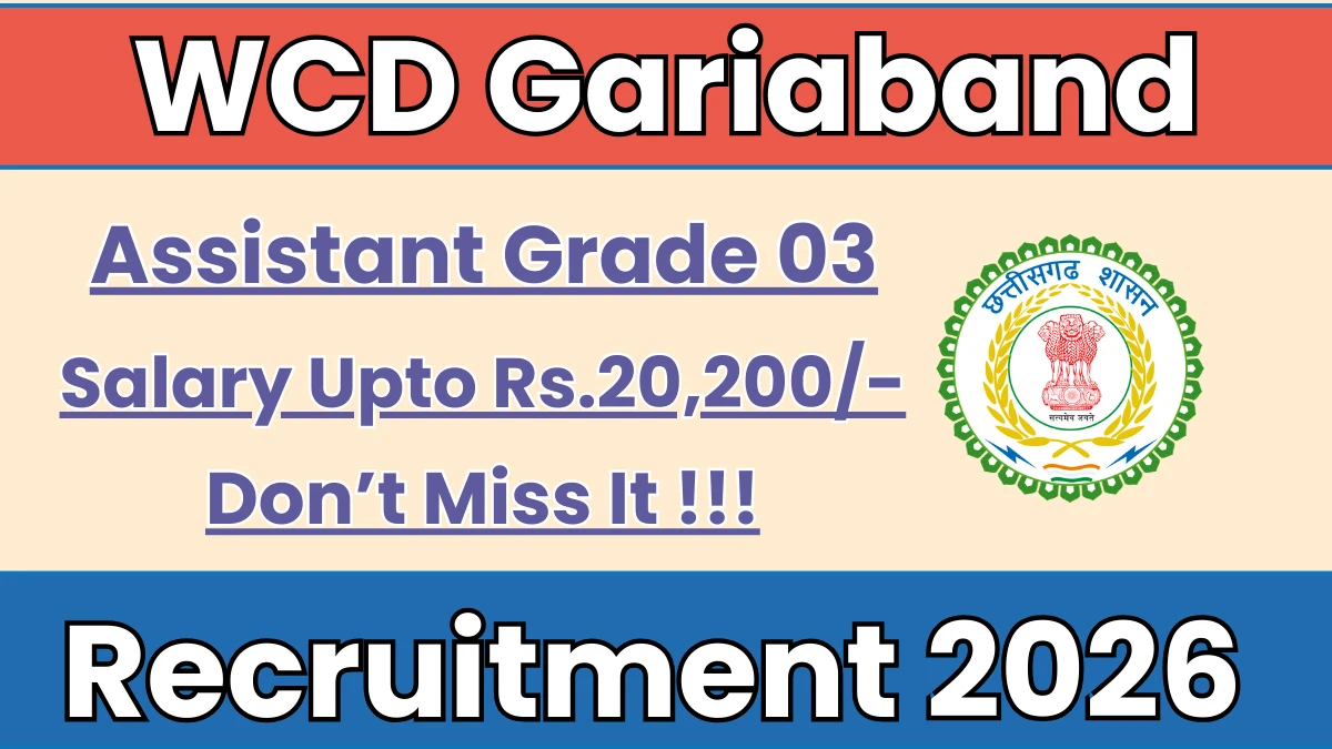 Women and Child Development Gariaband (WCD Gariaband) has released an official notification for the recruitment of 01 Assistant Grade 03 Posts. Interested and eligible candidates can apply Online through the official WCD Gariaband website. The last date to submit the application form is 15-02-2026. In this article, you’ll find the WCD Gariaband Assistant Grade 03 Posts recruitment details, including eligibility criteria, age limit, salary structure, selection process, application steps, and direct links to the official notification and Online application form.