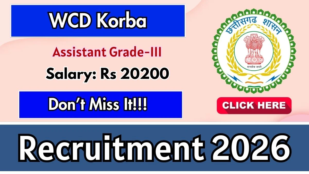 WCD Korba Assistant Grade-III (Third Division) Vacancy Details 2026