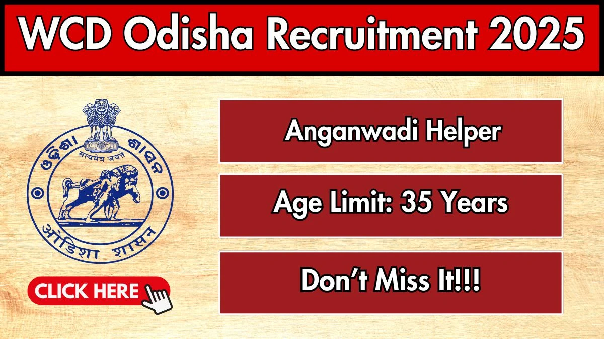 Women and Child Development Odisha (WCD Odisha) has released an official notification for the recruitment of 01 Anganwadi Helper Posts. Interested and eligible candidates can apply Online through the official WCD Odisha website. The last date to submit the application form is 18-10-2025. In this article, you’ll find the WCD Odisha Anganwadi Helper Posts recruitment details, including eligibility criteria, age limit, salary structure, selection process, application steps, and direct links to the official notification and Online application form.