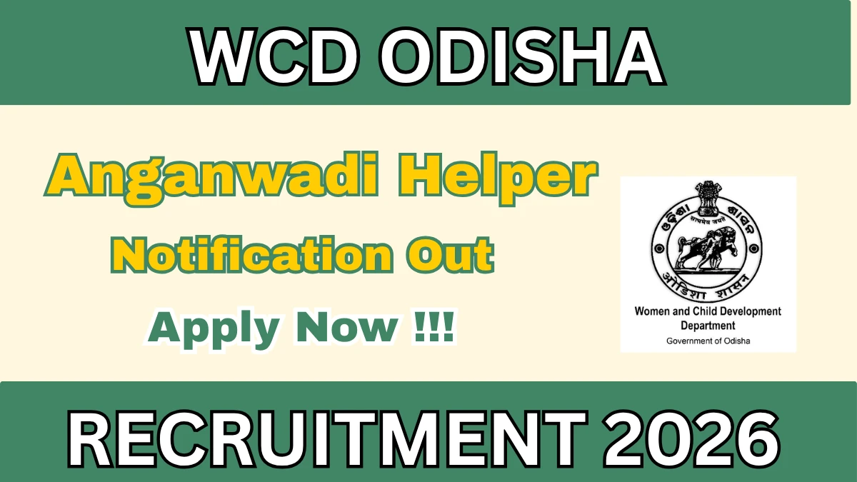 Women and Child Development Department Odisha (WCD Odisha) Anganwadi Helper Recruitment 2026 Notification has been released on the official website of WCD Odisha. A total of 01 vacancy has been announced through the WCD Odisha Anganwadi Helper Recruitment 2026.