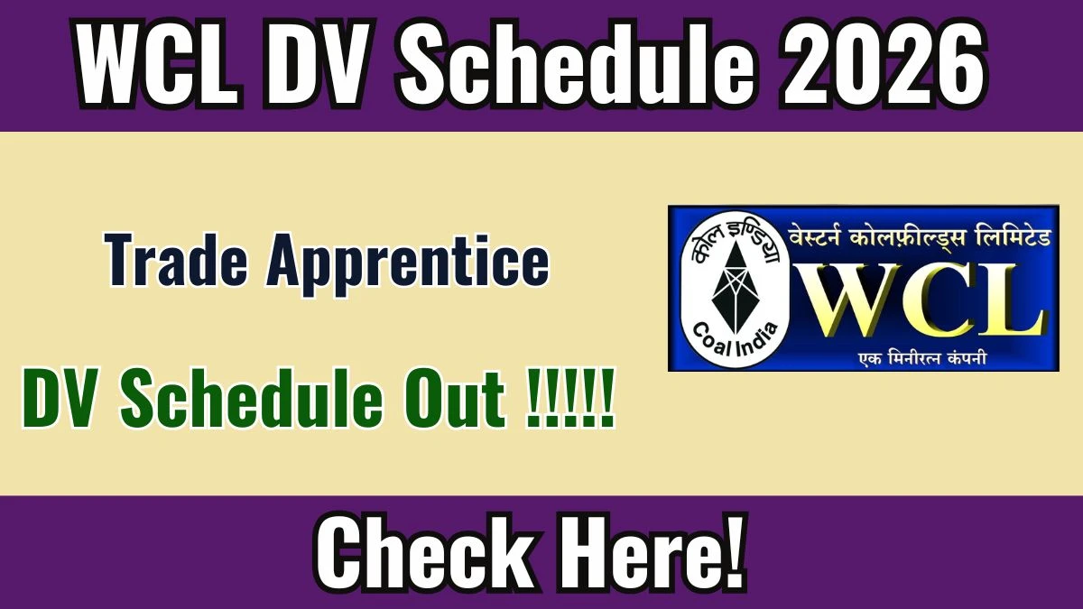 WCL DV Schedule 2026: The Western Coalfields Limited has officially released the Document Verification (DV) schedule for the Trade Apprentice recruitment 2026. Candidates who have been shortlisted for document verification can check the complete DV schedule, reporting time, venue details, and required documents list below. The document verification process is scheduled to begin from 29 January 2026.