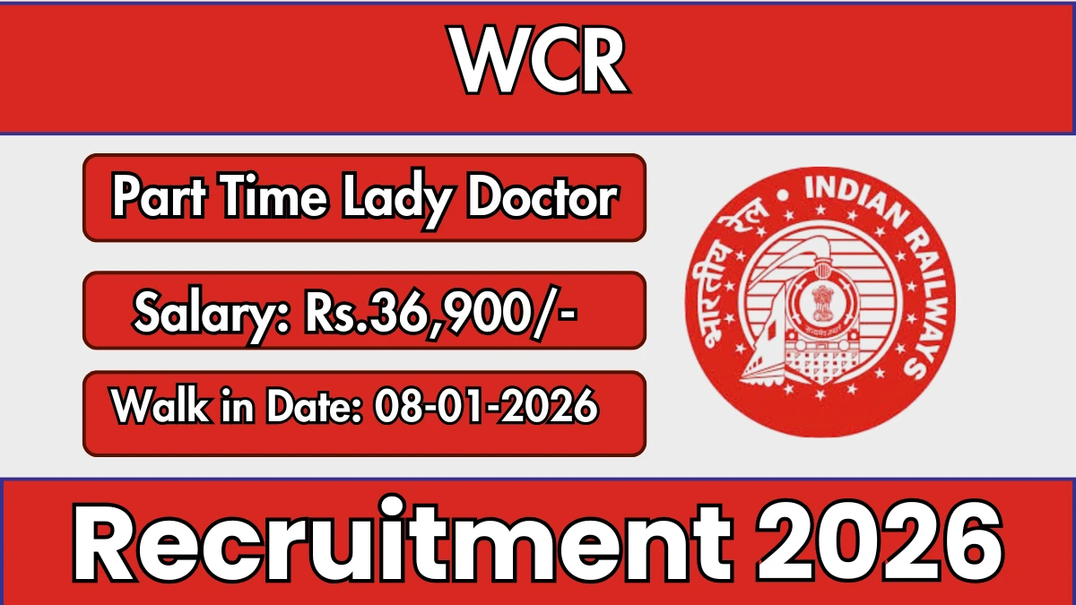 West Central Railway (WCR) Recruitment 2026 for 03 posts of Part Time Lady Doctor. Candidates with MBBS Can attend the walkin. The Walk-in on 08-01-2026. For detailed information please visit WCR official website, indianrailways.gov.in.