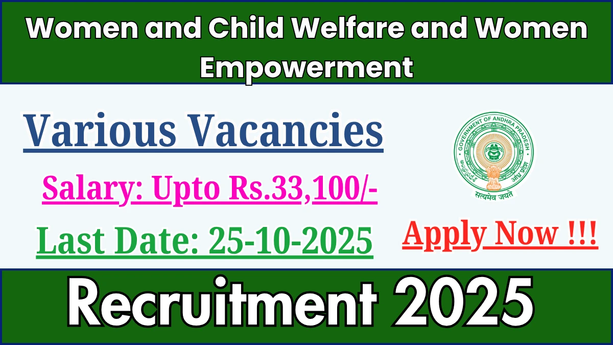 Women and Child Welfare and Women Empowerment Cook, Educator and More Recruitment 2025 Overview