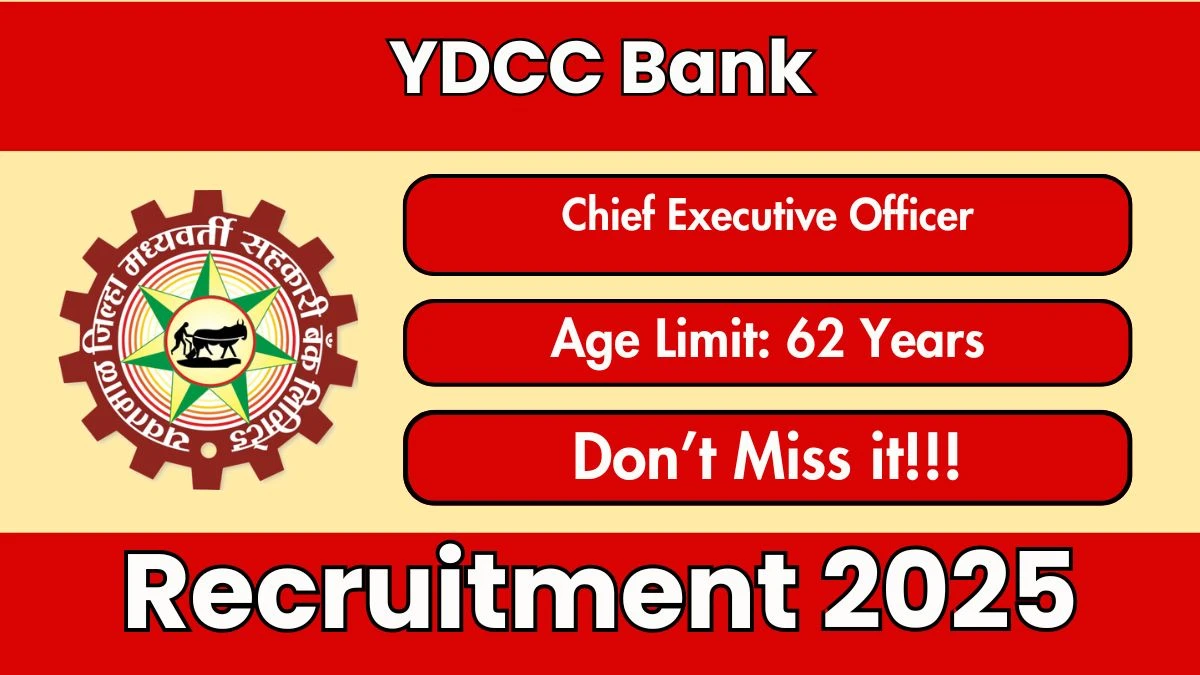 The Yavatmal District Central Co-operative Bank (YDCC Bank) Recruitment 2025 for posts of Chief Executive Officer. Candidates with Any Graduate, CA Can Apply Offline. The Offline application opens on 22-12-2025, and closes on 09-01-2026. The candidate shall apply Offline through YDCC Bank website, yavatmaldcc.bank.in.